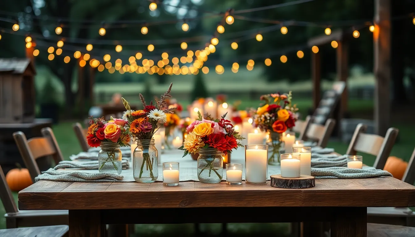 Mason jars filled with seasonal flowers or dried blooms serve as charming centerpieces. Wrapping twine around the jars adds a rustic touch. Couples might also consider using vintage crates filled with pumpkins for a seasonal display. Another idea involves clustering candles of varying heights on wooden slices, creating warmth and intimacy. Using elements like pinecones or acorns can tie in natural textures. Friends and family can get involved in crafting these personal touches, making centerpieces both beautiful and meaningful.
